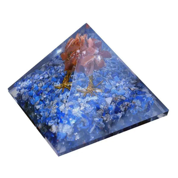 Alliée puissante pour celles et ceux qui veulent rayonner, créer et s’exprimer avec assurance, cette pyramide est composée de Cornaline et de Lapis-Lazuli. Elle active la force intérieure, la clarté émotionnelle et l’audace d’avancer sans compromis.